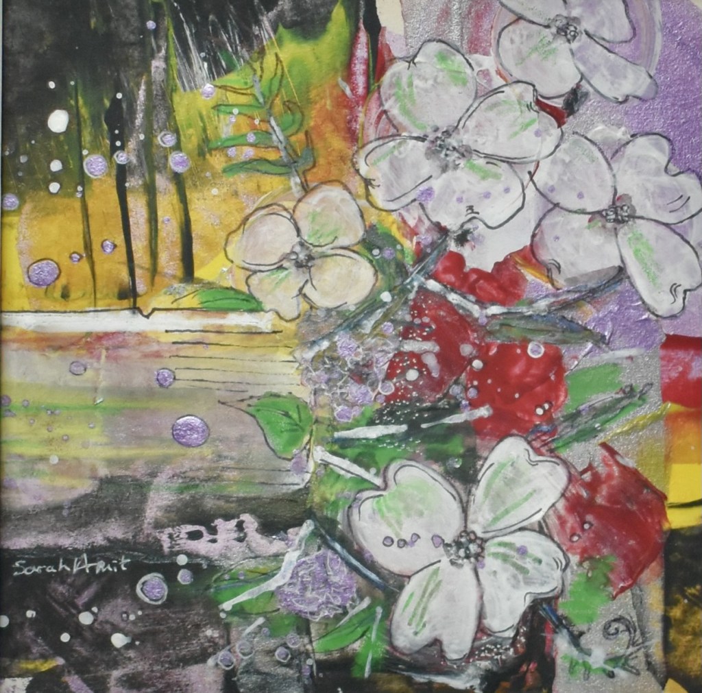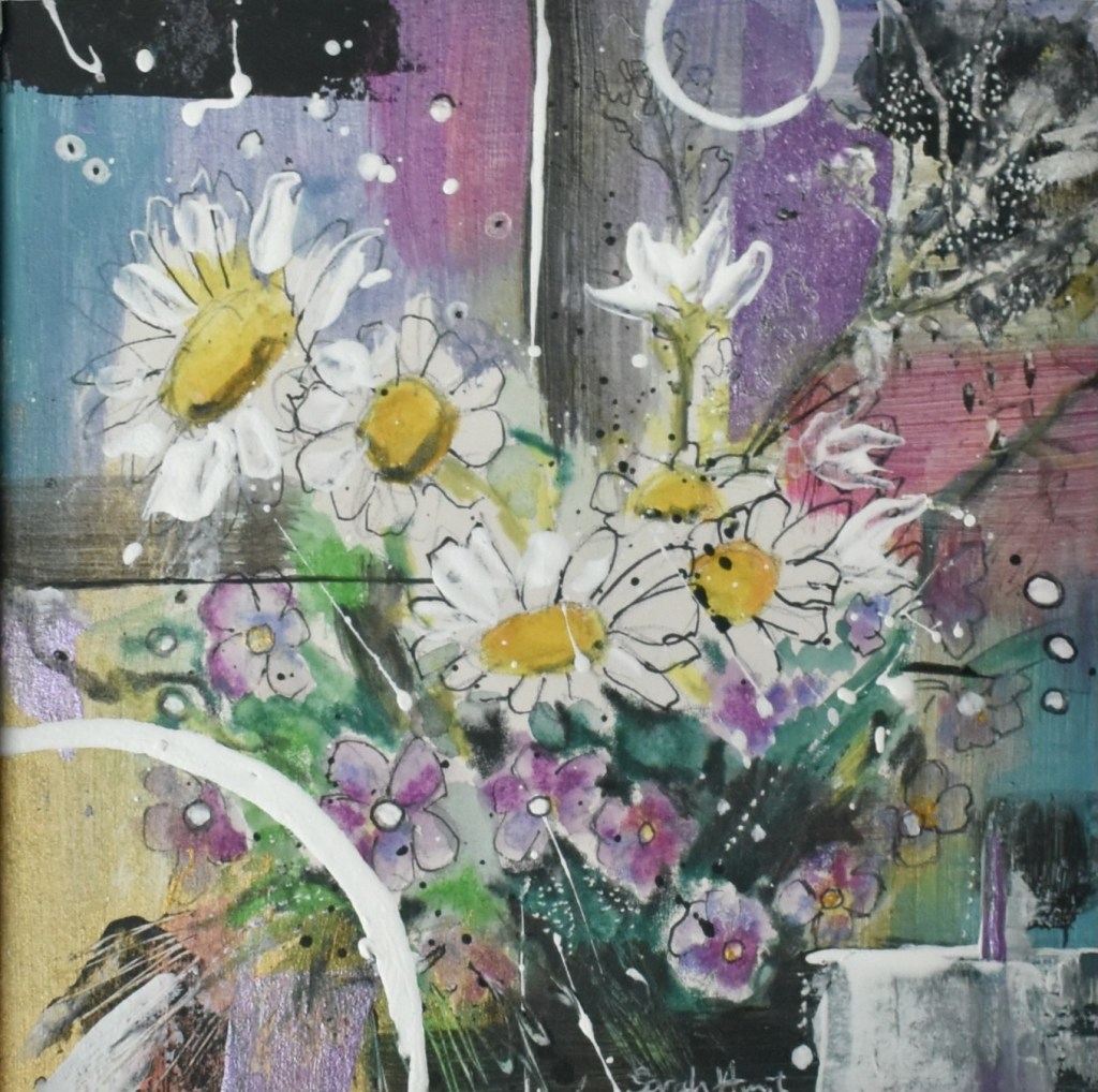 Acrylic and mixed media flower abstract 12cm x 12cm