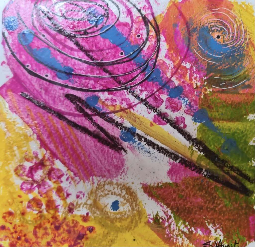 Acrylic and mixed media abstract 12cm x 12cm
