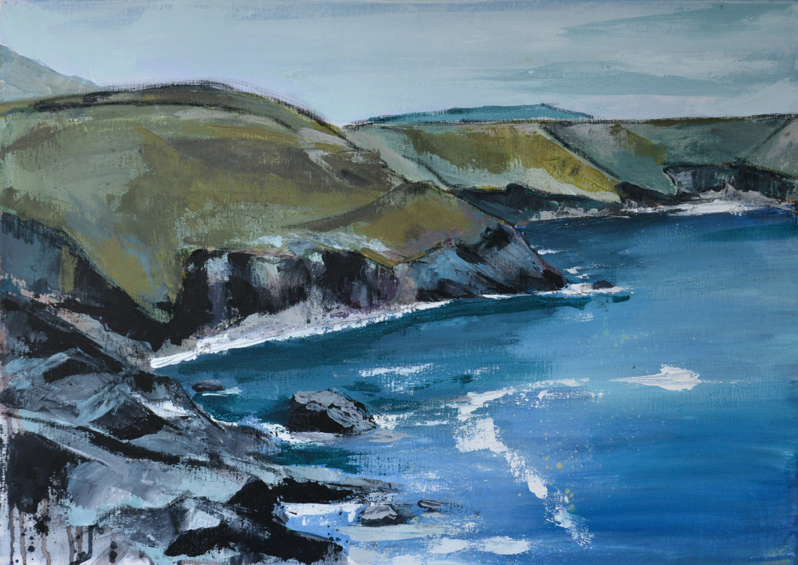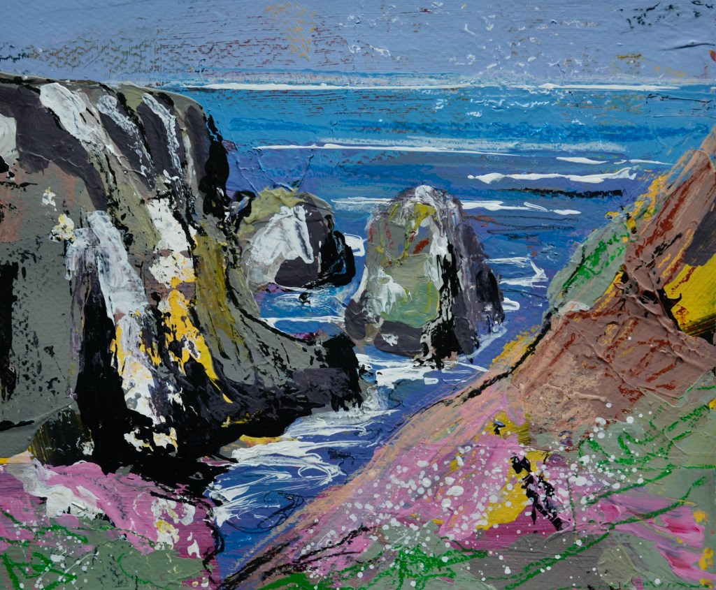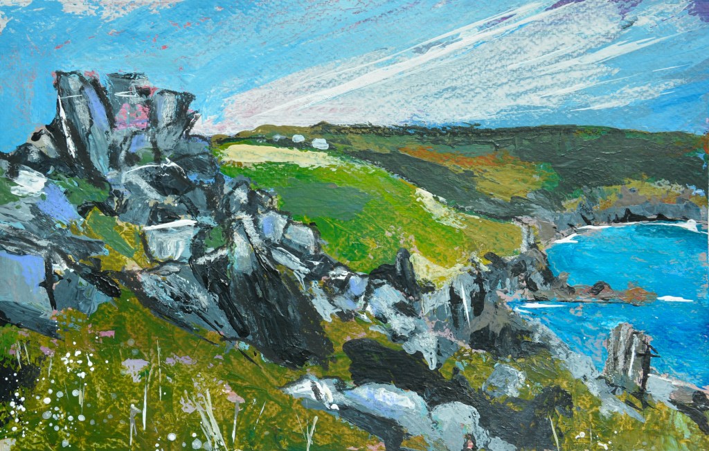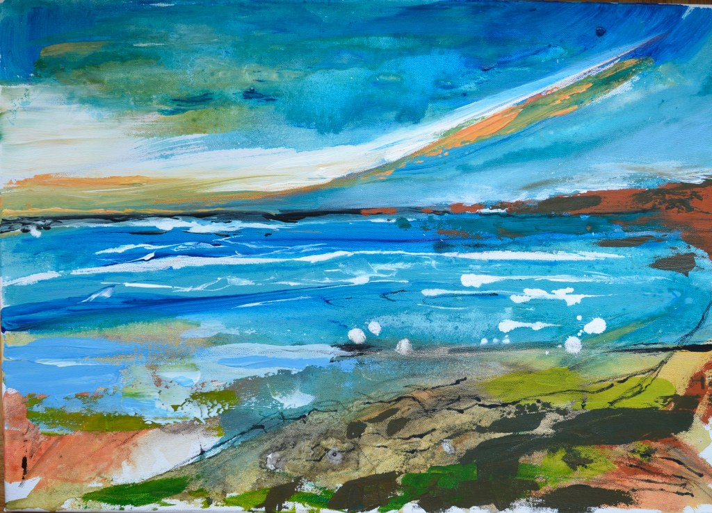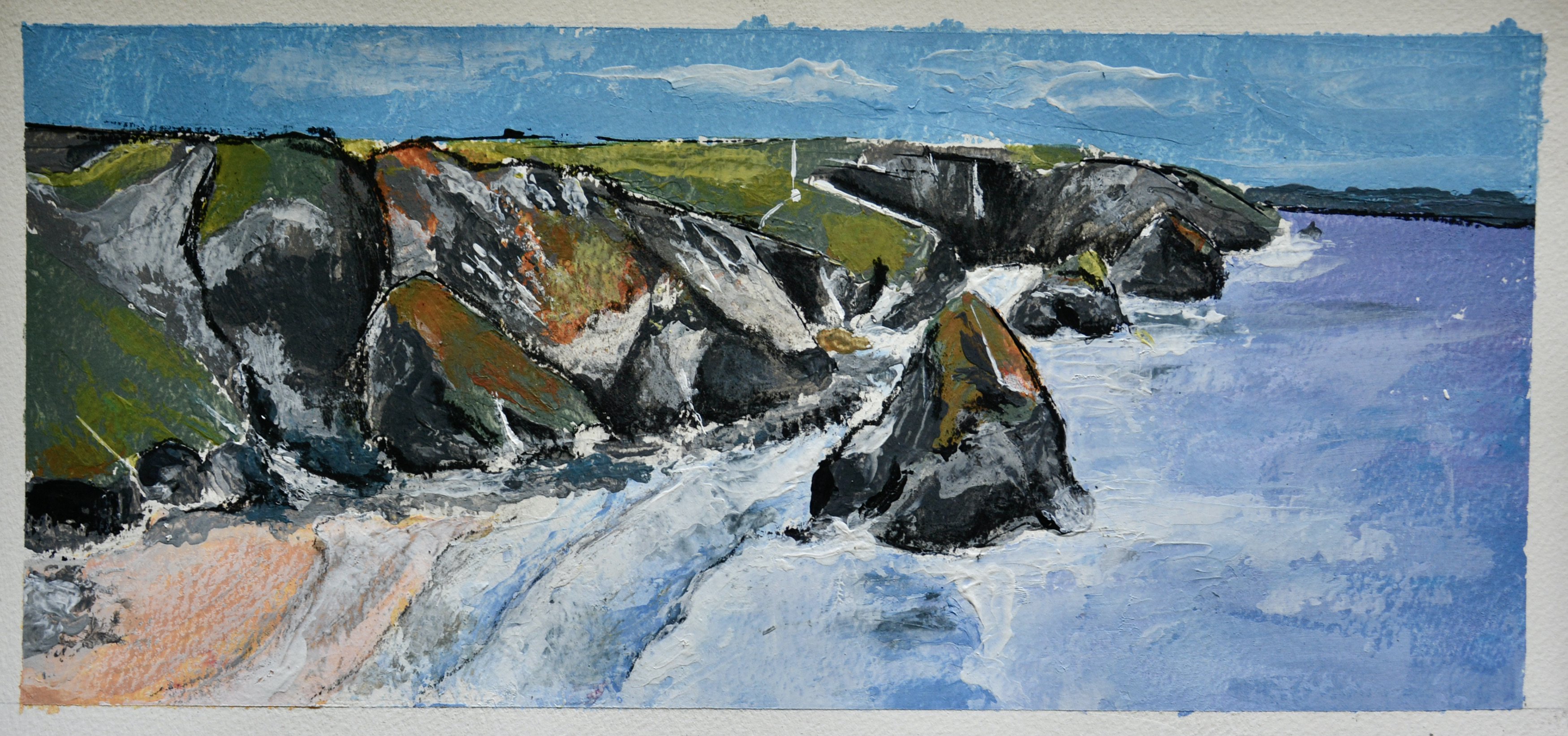 Mixed media, Acrylics and wax crayon, All pictures from walking the South west coast path, some 300 miles + Some available as Giclée Fine Art Prints, printed on archival grade paper. prices start from £60.00. excluding P&P